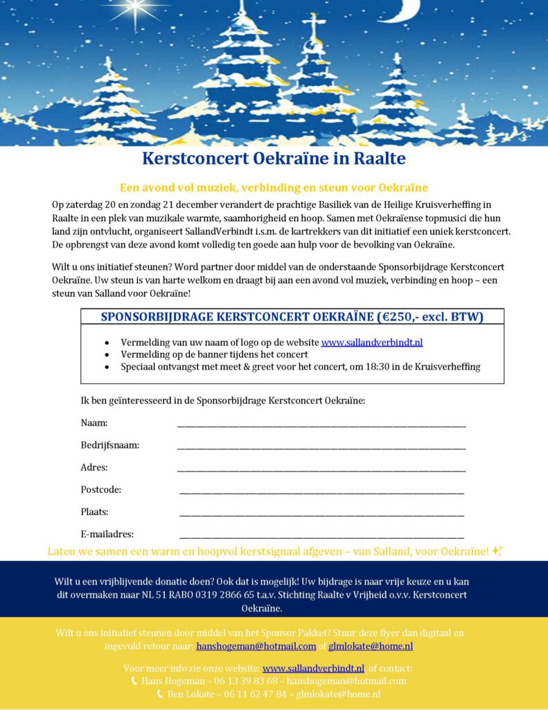 t.n.v. Stichting Raalte voor Vrijheid o.v.v. Kerstconcert Oekraïne.